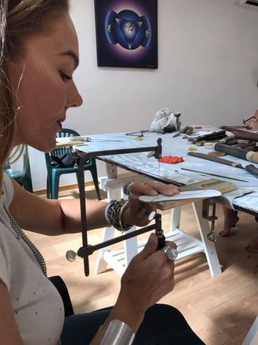 Che emozione! Il sogno di una vita si sta realizzando... riuscire ad usare tecniche prima d'ora sconosciute e che oggi finalmente ho messo in pratica. Usare seghetto, lima, fiamma per creare un pezzo che vive di tutta la sua unicità è pazzesco! Ho la testa che mi frulla. Tante idee..non vedo l'ora di concretizzare. A breve vedrete i frutti di questo nuovo tsunami creativo. E tutto questo grazie alla fantastica insegnante Siddha Giovanna Bellini La Terra e il Fuoco Gioielli...